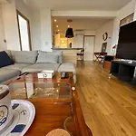 Denna lägenhet på 122 m^2 har balkong, TV och brandvarnare i varje rum. Boendet har också 2 badrum. I denna lägenhet finns badkar och dusch.